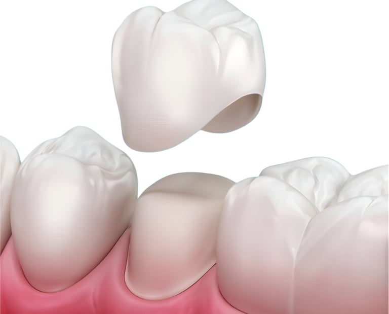 A crown is a custom “cap” that covers and protects a damaged or weakened tooth. It restores strength, function, and appearance so you can bite and smile comfortably again. We work with trusted U.S.-based dental labs to create durable, natural-looking crowns made just for you.