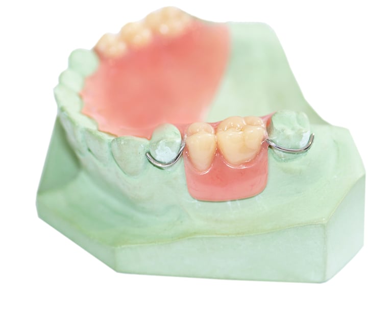 Partial dentures replace one or several missing teeth when some natural teeth remain. They typically attach to existing teeth with discreet clasps or connectors for support.