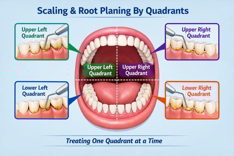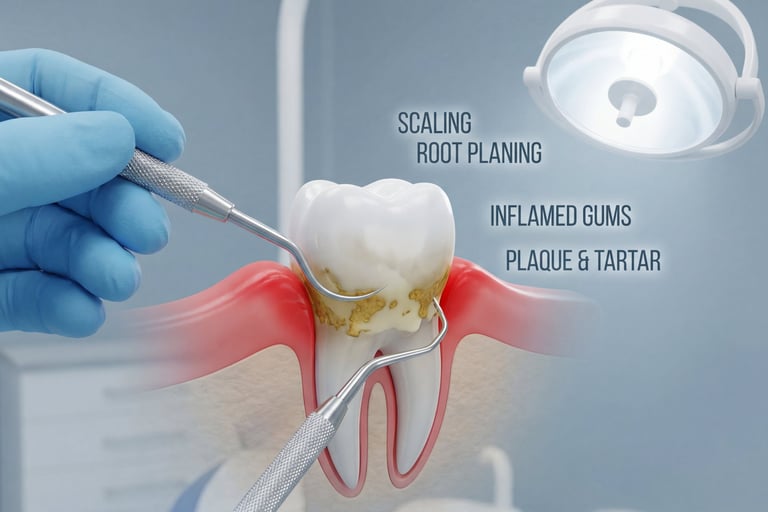 Scaling and root planing helps control infection, reduce gum inflammation, and prevent the progression of gum disease, supporting healthier gums and improved long-term oral health.